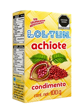 Condimento tradicional para cocina diaria. El achiote Lol Tun aporta color intenso aroma característico y sabor auténtico ideal para adobar carnes aves pescados arroz y guisos tradicionales mexicanos brindando resultados consistentes en preparaciones caseras y comerciales diarias prácticas rendidoras fáciles económicas sabrosas. Beneficios: ✔Aporta color intenso, ✔Realza el sabor, ✔Ideal para adobos, ✔Uso doméstico. Presentación: 45 piezas de 100gr.
