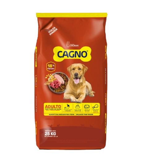 Alimento Cagnolino adulto completo para perros activos. Formulado para perros adultos aporta nutrición balanceada energía diaria proteínas vitaminas minerales digestión adecuada apoyo muscular condición corporal óptima pelaje saludable sabor agradable rendimiento constante hogares criadores responsables confiable práctico económico accesible popular estable. Beneficios: ✔Nutrición balanceada, ✔Energía diaria, ✔Buena digestión, ✔Buen sabor, ✔Rendimiento constante. Presentación: 25kg.