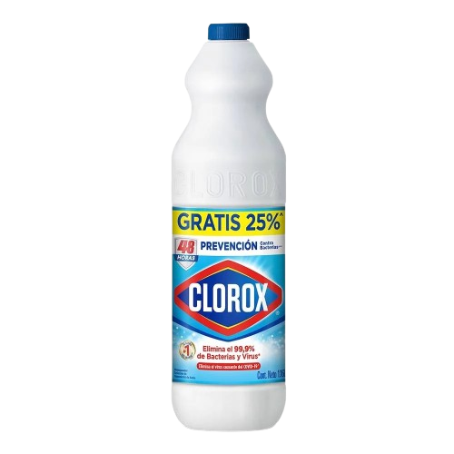 Cloro multiusos ideal para limpieza desinfección y blanqueo doméstico. Fórmula eficaz elimina gérmenes bacterias manchas y olores en pisos baños cocinas ropa hogares negocios consumo frecuente calidad confiable constante práctico seguro rendidor mantenimiento doméstico continuo recomendado familiar eficiente accesible. Beneficios: ✔Limpieza profunda, ✔Desinfección eficaz, ✔Blanqueo confiable, ✔Uso doméstico, ✔Alto rendimiento. Presentación: 15 botellas de 1.16Lts.