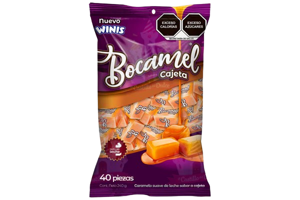 Caramelo Bocamel sabor cajeta ideal para consumo y reventa diaria. Caramelo suave relleno de cajeta con sabor dulce tradicional perfecto para antojos colaciones obsequios y venta individual aporta textura cremosa disfrute inmediato consumo frecuente en hogares escuelas tiendas negocios. Beneficios: ✔Sabor cajeta tradicional, ✔Textura suave cremosa, ✔Ideal para reventa, ✔Consumo ocasional, ✔Presentación individual práctica. Presentación: 24 exhibidores con 40 piezas.