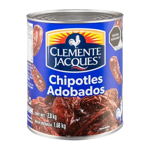 Chile chipotle ideal para sazonar platillos tradicionales mexicanos. Chile ahumado en adobo ofrece sabor intenso picor moderado y aroma característico perfecto para guisos salsas marinados recetas caseras restaurantes negocios comida mexicana consumo frecuente calidad confiable constante rendimiento alto práctico versátil estable. Beneficios: ✔Sabor ahumado intenso, ✔Picor moderado balanceado, ✔Uso culinario versátil, ✔Calidad confiable, ✔Formato rendidor. Presentación: 6 latas de 2.800kg.