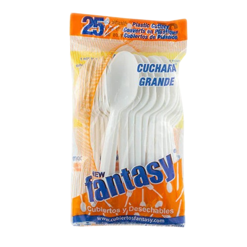 Cuchara desechable grande ideal para servir alimentos variados. Fabricada en plástico resistente brinda practicidad higiene y comodidad para eventos fiestas negocios hogares consumo frecuente calidad confiable práctica ligera apilable funcional uso diario en reuniones celebraciones rápidas seguras y limpias simples modernas cotidiano versátil. Beneficios: ✔Material resistente, ✔Uso alimentario, ✔Tamaño grande práctico, ✔Fácil manejo, ✔Consumo diario. Presentación: 40 paquetes con 25 piezas.