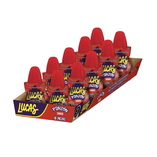 Dulce Lucas Panzón sabor sandía, con una combinación dulce, acidita y picosita que lo hace muy atractivo para niños y jóvenes. Su presentación en paquetes múltiples es ideal para venta por unidad. Beneficios: ✔Dulce popular de alta preferencia, ✔Presentación ideal para venta por unidad, ✔Excelente para exhibición, ✔Alta rotación en punto de venta. Presentación: 24 paquetes, con 10 piezas.