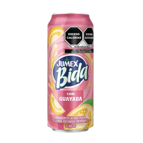 Bebida Jumex Bida sabor guayaba, con un sabor frutal dulce y refrescante, ideal para consumo familiar y para acompañar comidas. Su presentación ofrece buen rendimiento y es perfecta para puntos de venta con alta rotación. Beneficios: ✔Sabor guayaba dulce y agradable, ✔Buen rendimiento por envase, ✔Ideal para consumo diario, ✔Alta rotación en abarrotes. Presentación: 12 envases de 460ml.