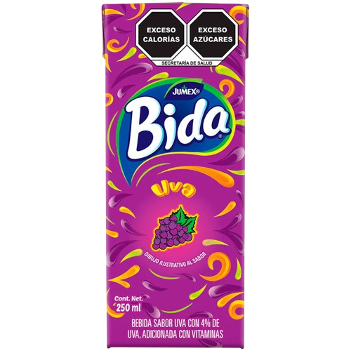 Bebida Jumex Bida sabor uva, con un sabor frutal dulce y agradable, ideal para consumo diario y para acompañar comidas. Su presentación es práctica y perfecta para hogares y puntos de venta con buena rotación. Beneficios: ✔Listo para beber, ✔Sabor uva dulce y agradable, ✔Presentación práctica, ✔Alta rotación en abarrotes. Presentación: 12 envases de 250ml.