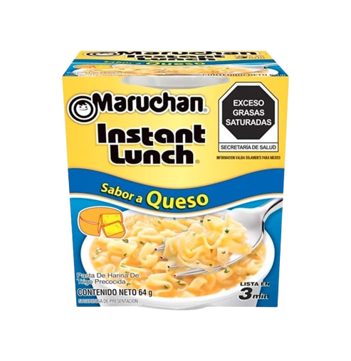 Sopa instantánea Maruchan sabor queso, con un perfil cremoso y reconfortante. Ideal para comidas rápidas. Presentación en sobre práctica para venta por unidad y con alta rotación en abarrotes y tiendas de conveniencia. Beneficios: ✔Preparación rápida y sencilla, ✔Sabor a queso cremoso, ✔Presentación práctica en sobre, ✔Ideal para consumo individual. Presentación: Caja con 12 sobres de 64gr.
