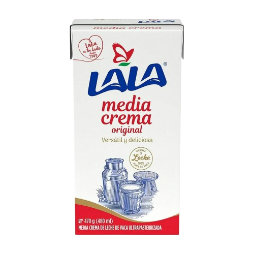 Media crema Lala de sabor suave y textura cremosa, ideal para cocina dulce y salada. Perfecta para sopas, pastas, salsas, postres y bebidas, con excelente rendimiento para hogar y food service. Beneficios: ✔Textura cremosa y fácil de integrar, ✔Sabor balanceado, ✔Ideal para recetas dulces y saladas, ✔Excelente rendimiento, ✔Marca mexicana reconocida. Presentación: 24 piezas de 480ml.