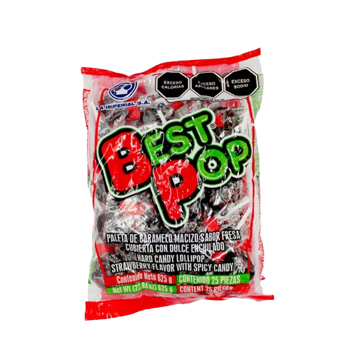 Paleta Best Pop de sabores dulces y coloridos, ideal para tiendas, dulcerías y venta por pieza. Muy atractivo para niños y excelente para surtir anaquel por su presentación rendidora. Beneficios: ✔Sabores dulces y agradables, ✔Presentación rendidora, ✔Ideal para venta por pieza, ✔Alta rotación en punto de venta, ✔Marca reconocida en dulcería. Presentación: Caja con 20 bolsas de 25 piezas.