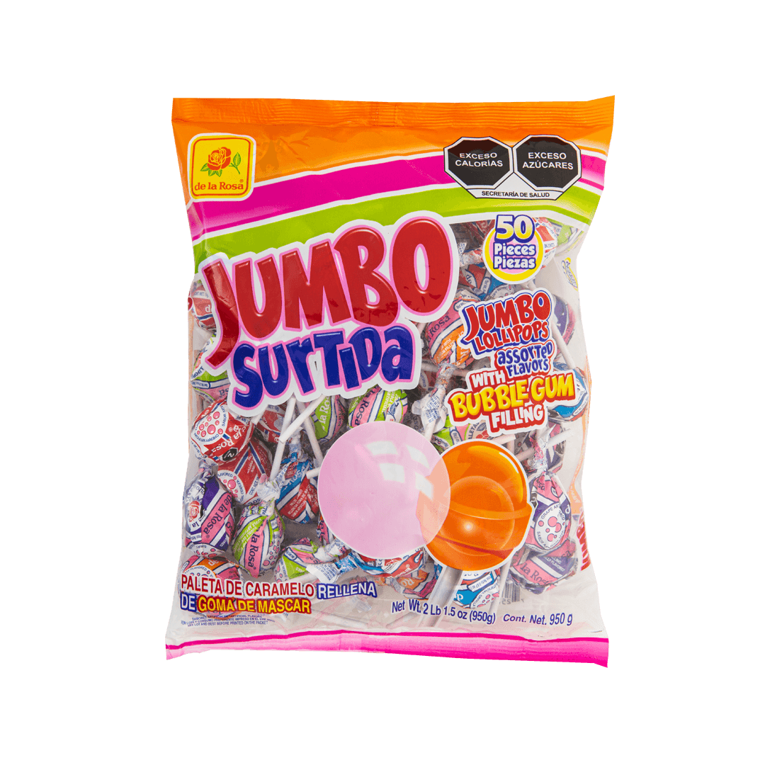 Paletas Jumbo surtidas de De la Rosa, con variedad de sabores clásicos y tamaño grande que ofrece mayor valor por pieza. Ideales para tiendas, dulcerías y venta, con excelente rotación y gran aceptación. Beneficios: ✔Surtido de sabores clásicos, ✔Tamaño jumbo, mayor atractivo, ✔Ideal para venta, ✔Presentación rendidora, ✔Marca mexicana reconocida. Presentación: Caja con 12 bolsas de 50 piezas.