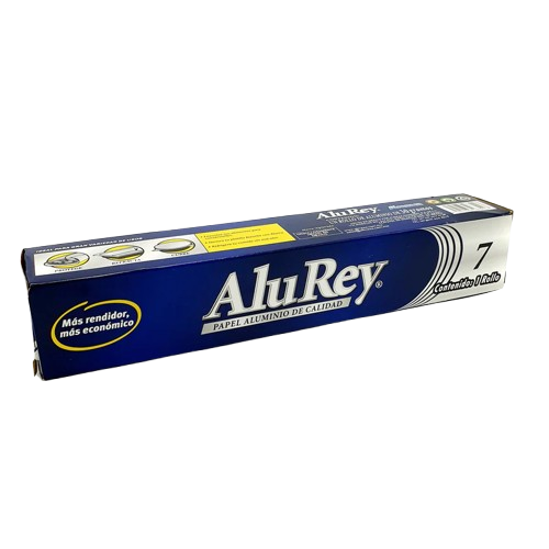 Papel aluminio Alurey, ideal para uso doméstico y comercial ligero. Perfecto para envolver alimentos, conservar frescura y tareas rápidas en cocina. Presentación económica y de alta rotación. Beneficios: ✔Ayuda a conservar la frescura de los alimentos, ✔Fácil de manejar y usar, ✔Ideal para uso diario, ✔Presentación económica, ✔Alta rotación en punto de venta. Presentación: 24 rollos de 7 metros.