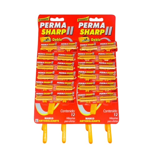 Rastrillo Perma-Sharp, reconocido por su buen filo y desempeño confiable para un afeitado efectivo. Diseño práctico para uso diario, ideal para venta al menudeo y alta rotación en abarrotes, farmacias y tiendas de conveniencia. Beneficios: ✔Buen filo para afeitado eficaz, ✔Uso cómodo y práctico, ✔Ideal para uso diario, ✔Presentación rendidora, ✔Marca reconocida. Presentación: Paquete con 24 piezas.