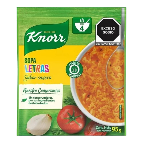 La Sopa Knorr Letras es una opción rápida y divertida para preparar sopas con el sabor tradicional Knorr. Su pasta en forma de letras la hace especialmente atractiva para niños. Beneficios: ✔Ideal para comidas ligeras o como base de platillos, ✔Producto de alta rotación, ✔Marca líder y confiable. Presentación: 12 sobres de 95gr.