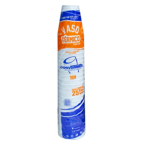 El Vaso Térmico Convermex #10 es un vaso desechable ideal para servir bebidas calientes o frías. Beneficios: ✔Ideal para menudeo y mayoreo, ✔Material desechable y aislante adecuado para líquidos calientes o fríos, ✔Capacidad moderada ideal para bebidas calientes de consumo individual, ✔Diseño térmico que ayuda a conservar la temperatura de bebidas. Presentación: 40 paquetes de 25 vasos.